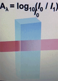 不同的光源發射出特定的發射光透過載物的微孔板、光的一部分被物質吸收,從而前后光的強度發生變化,這種特異性的強度變化與被測物濃度呈一定比例關系,能夠定量、定性地檢測結果。該儀器操作簡單,技術成熟,但靈敏度不高,當需要測定不同波段時,需切換不同光源。