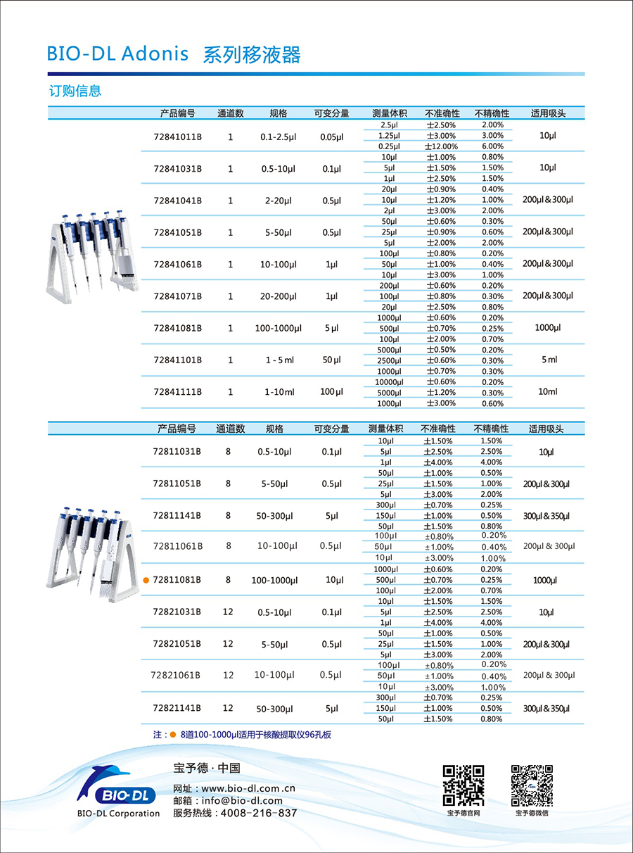 Adnios 100-1000μl 8道核酸提取專用移液器